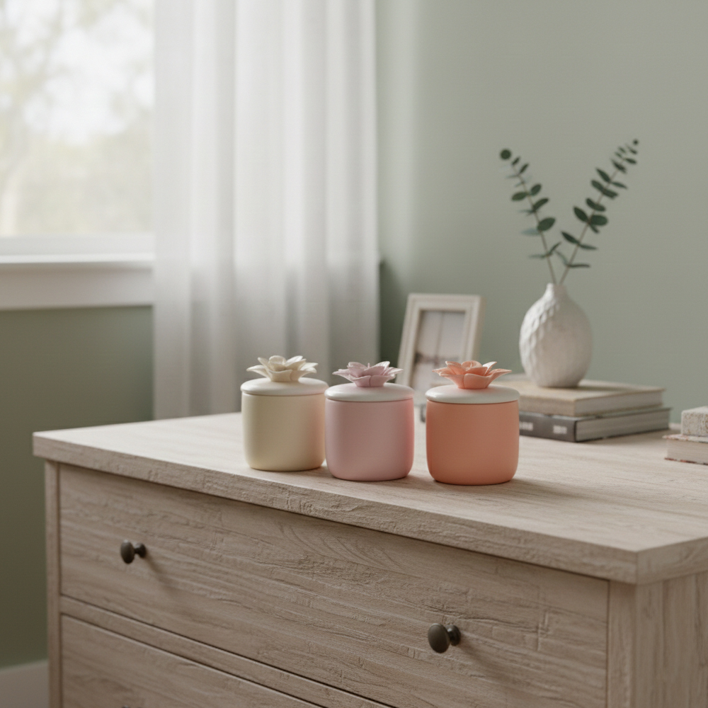 L’eleganza del dettaglio per i tuoi ricordi più preziosi. Questa raffinata scatola portaoggetti in ceramica della linea Le Stelle è il connubio perfetto tra funzionalità e stile classico. Caratterizzata da una superficie liscia e lucida, è impreziosita sul coperchio da un delicato fiorellino in rilievo, realizzato con cura artigianale. La base è rifinita con un elegante bordo dorato che ne esalta la preziosità.