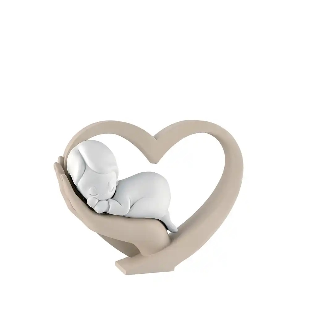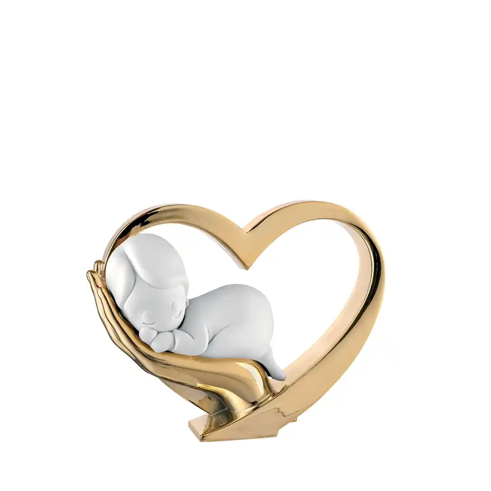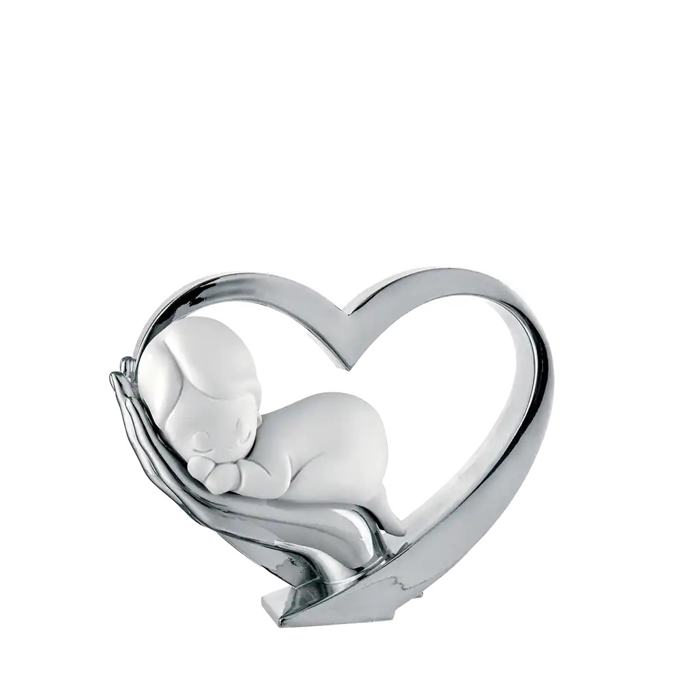 Scultura mano cuore con bimbo in marmorino .