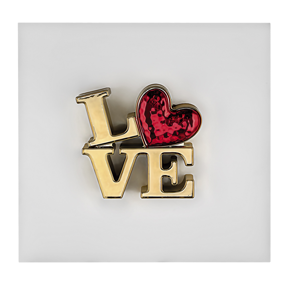I colori oro e rosso utilizzati per la scritta “LOVE” sono una scelta classica e raffinata, simboli di passione, amore e lusso.
