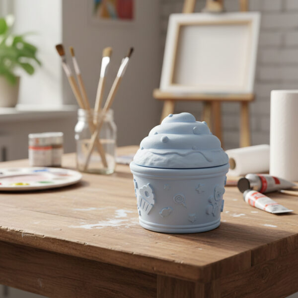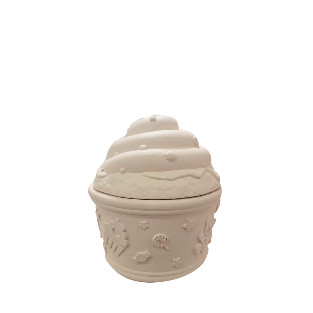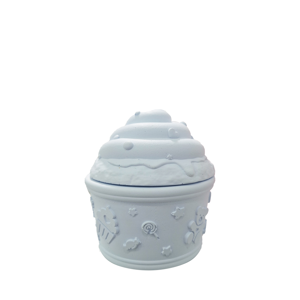 La candela “Riflessi” si presenta in un elegante contenitore di gesso a forma di cupcake, un vero e proprio oggetto di design che arreda con stile e originalità.