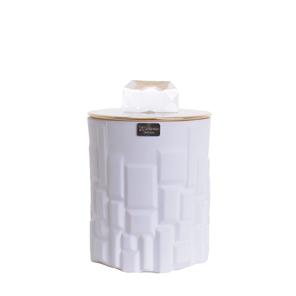 Candela profumata Mia in vasetto color bianco con coperchio oro della collezione Chiaraela, scopri tutta la linea disponibile online e in store.