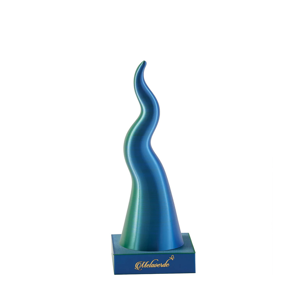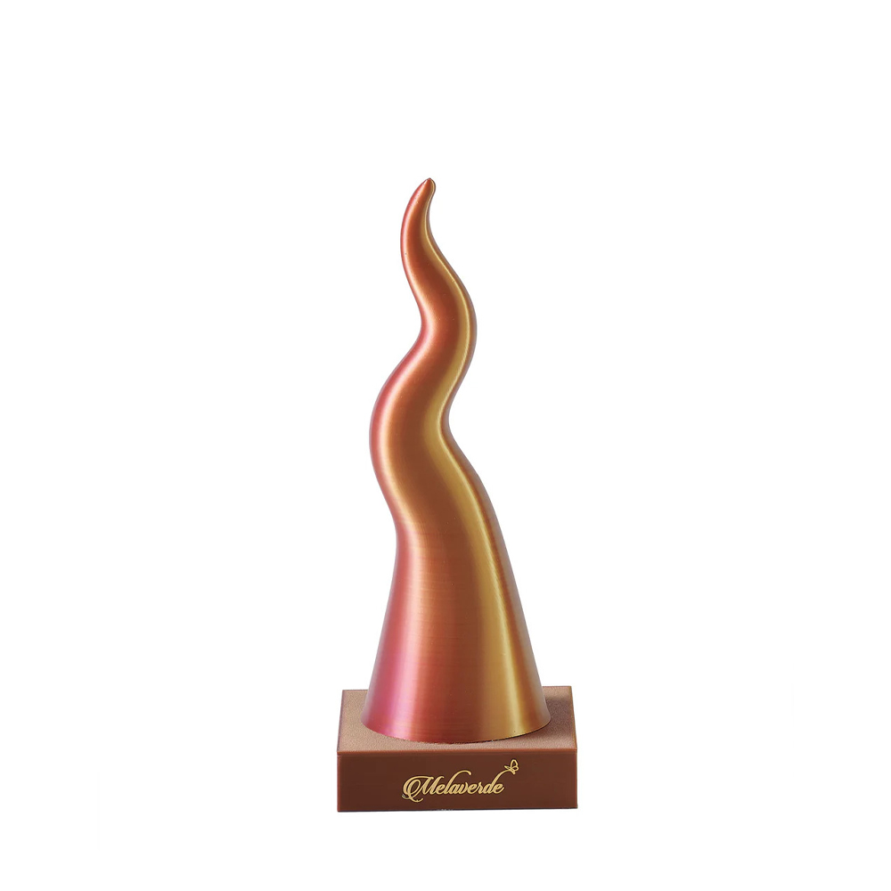 - Forma Sinuosa e Ascendente: La silhouette elegante e ricurva del corno è slanciata e moderna, poggia su una base solida incisa con il logo Melaverde, garantendo stabilità e un tocco di lusso.