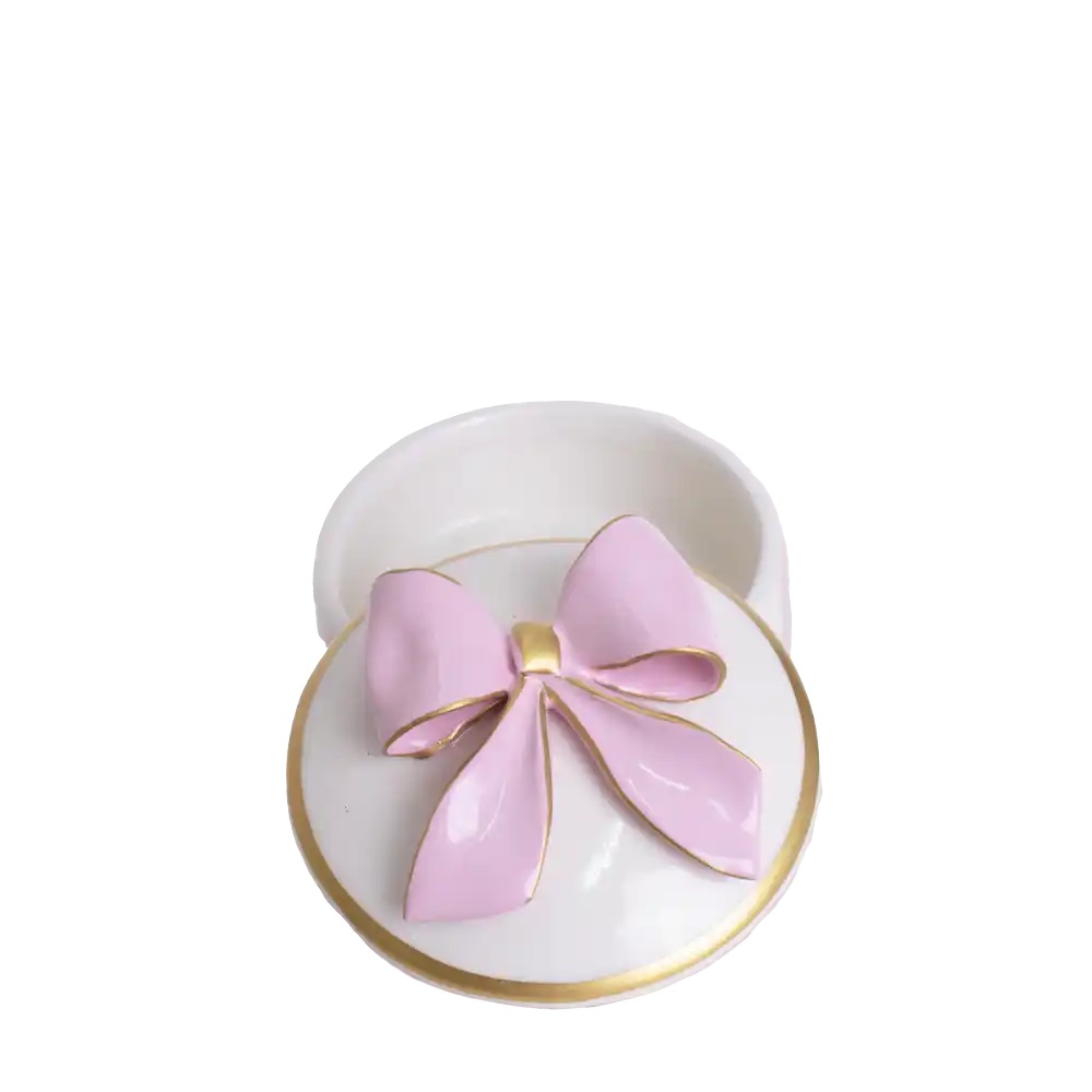 Scatola Tonda in porcellana di capodimonte con applicazione Fiocco Dea Capodimonte.