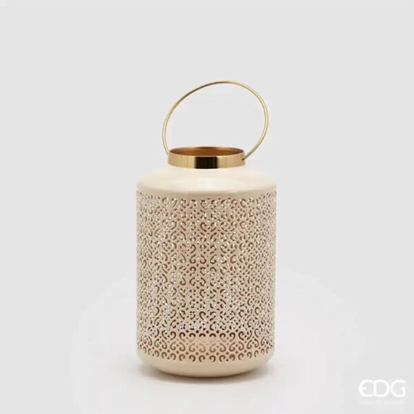EDG presenta Lanterna dalla forma leggermente a campana, con dettaglio traforato,in metallo colorato.