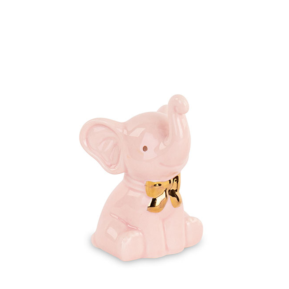 Porta un simbolo di fortuna e tenerezza in ogni ambiente con il delizioso elefantino in porcellana della linea Cupido & Co. Alto 8 cm e rifinito con una preziosa finitura lucida, questo piccolo oggetto decorativo si distingue per il raffinato fiocco dorato al collo, che aggiunge un punto luce elegante e sofisticato.