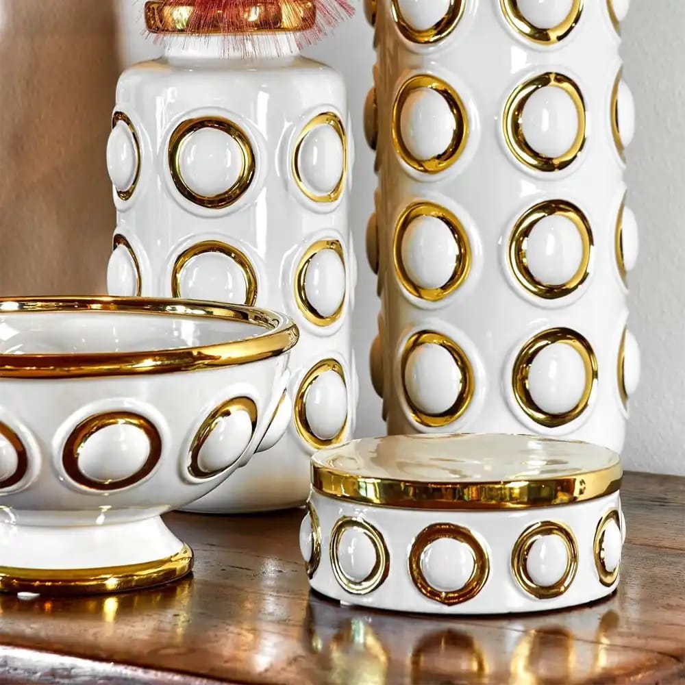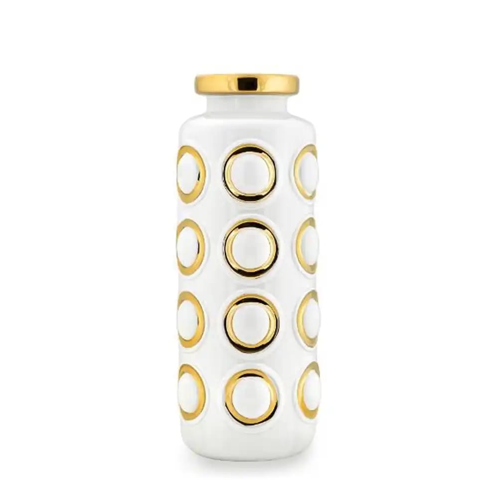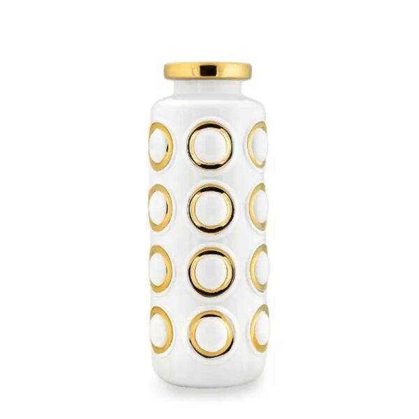 Vaso Narciso in finissima porcellana di alta qualità, caratterizzato da un design moderno, arricchito da una splendida geometria in oro e bianco .