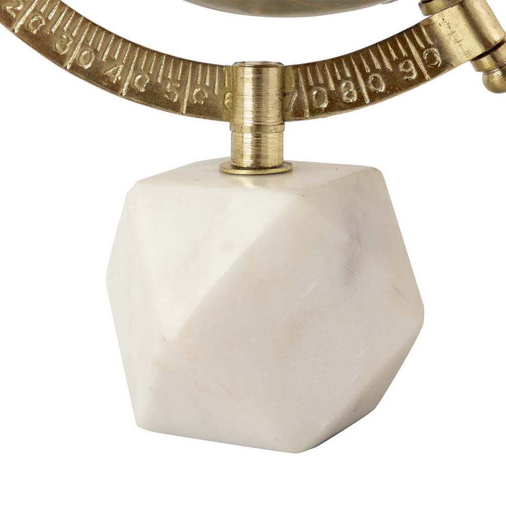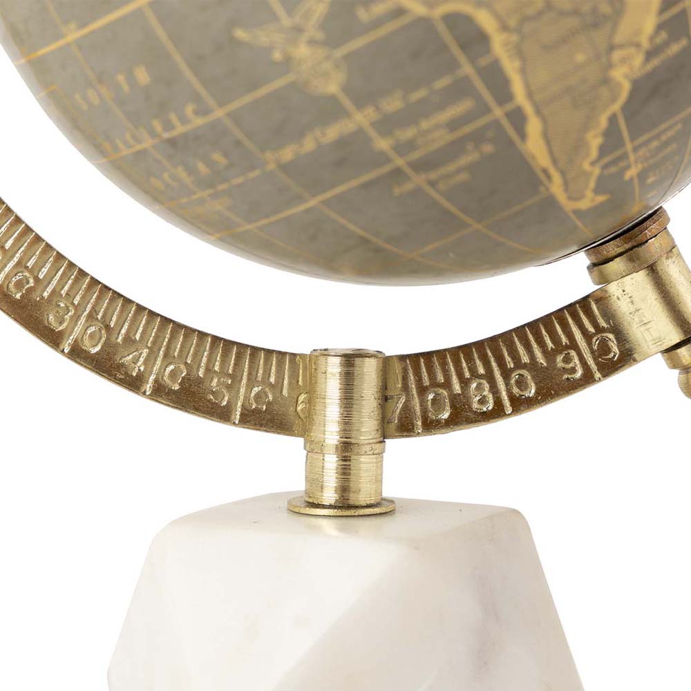 Mappamondo con base effetto pietra bianco e tortora con dettagli oro.