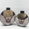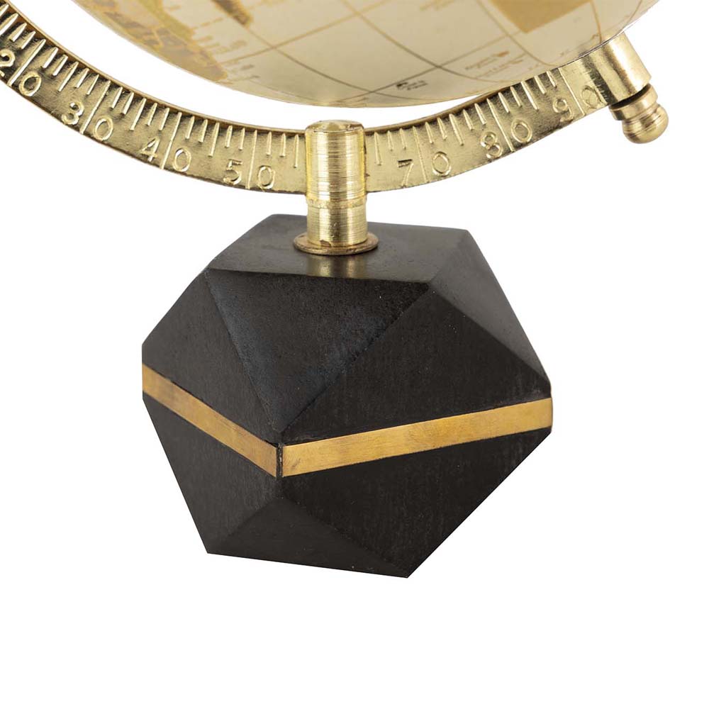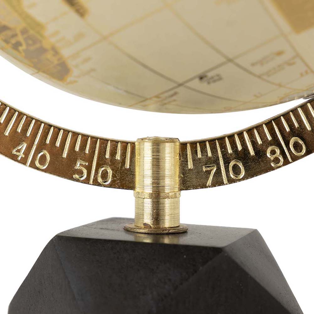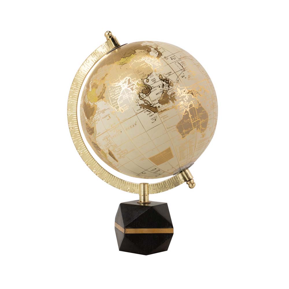 Mappamondo con base effetto pietra nero e tortora con dettagli oro.