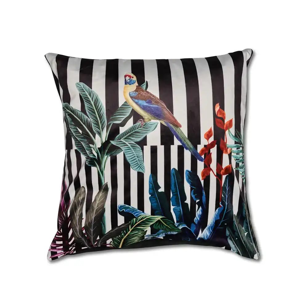 Le sfumature di verde, giallo e rosso si mescolano armoniosamente, creando un’atmosfera accogliente e fresca all’interno degli ambienti domestici. I pappagalli e i colibrì, dipinti con maestria su tessuti e superfici, aggiungono un tocco di esotismo e fascino, portando con sé l’immagine di paesaggi lontani e avventure selvagge.