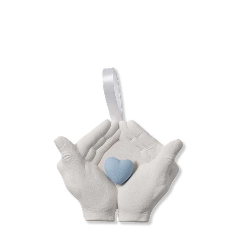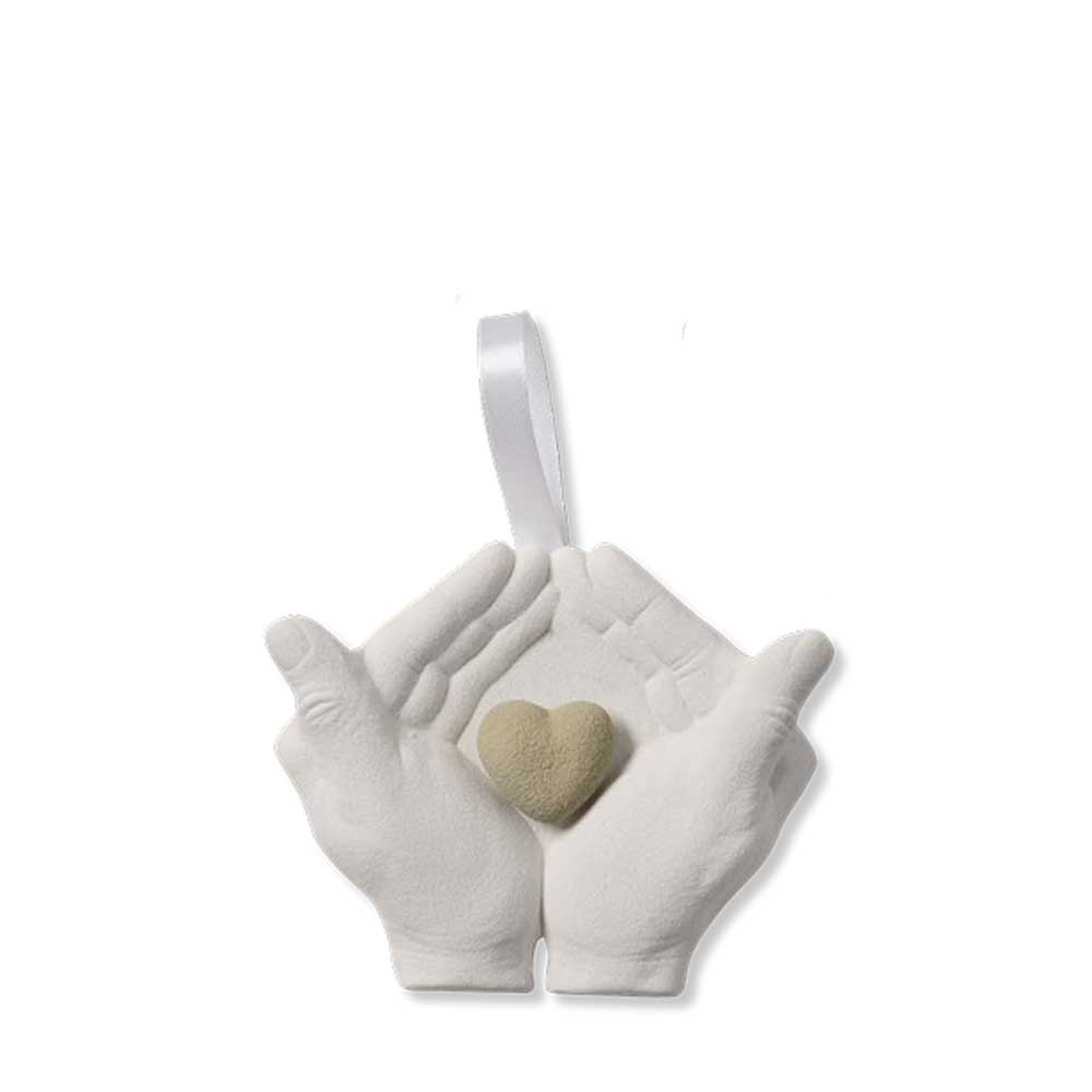 Un tocco di romanticismo per la tua casa. Questo elegante appendino, realizzato in ceramica, raffigura due mani che stringono un piccolo cuoricino.