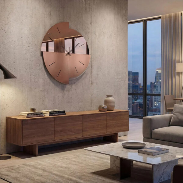 Disponibile in raffinate combinazioni di colori come Fango/Rosa, Nero/Bronzo e Nero/Fumé, e con lancette Nere o Oro, Avignone si adatta perfettamente a qualsiasi ambiente moderno, dal soggiorno minimalista all’ufficio executive.