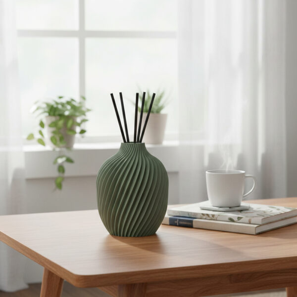 Questo diffusore d’ambiente non è solo un profumatore, ma un pezzo d’arte contemporanea realizzato in PLA (acido polilattico), una bioplastica biodegradabile e riciclabile derivata da fonti rinnovabili come amido di mais e canna da zucchero.