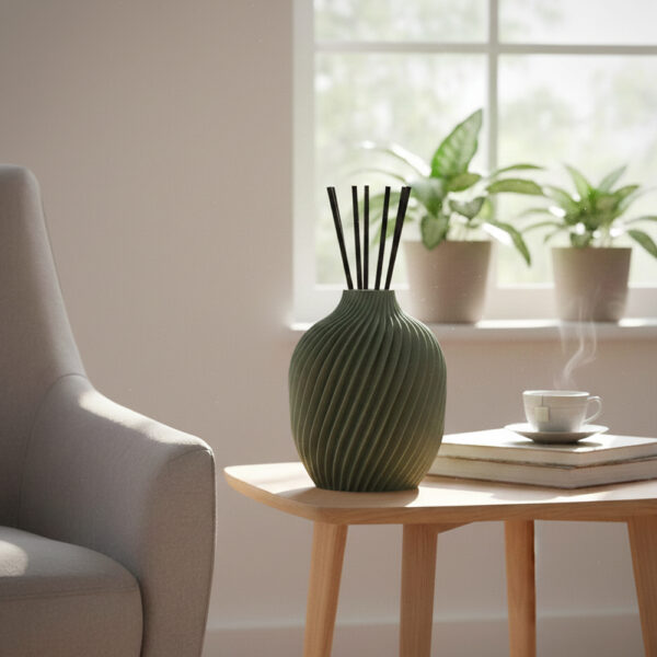 Questo diffusore d’ambiente non è solo un profumatore, ma un pezzo d’arte contemporanea realizzato in PLA (acido polilattico), una bioplastica biodegradabile e riciclabile derivata da fonti rinnovabili come amido di mais e canna da zucchero.
