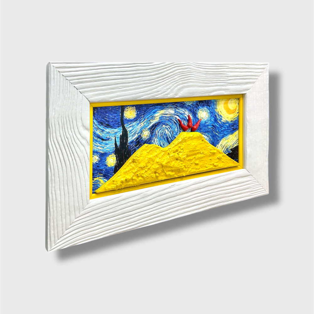Realizzato con una tecnica 3D che esalta lo spessore del colore, il quadretto è un gioco di contrasti tra la stabilità del gigante di fuoco e il dinamismo onirico del post-impressionismo. Un pezzo d’arte contemporanea che non è solo decorazione, ma un omaggio colto e scaramantico alla bellezza universale. Racchiuso in una cornice moderna, è il dettaglio perfetto per chi cerca un’eleganza vivace e un pizzico di fortuna.