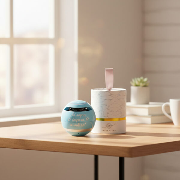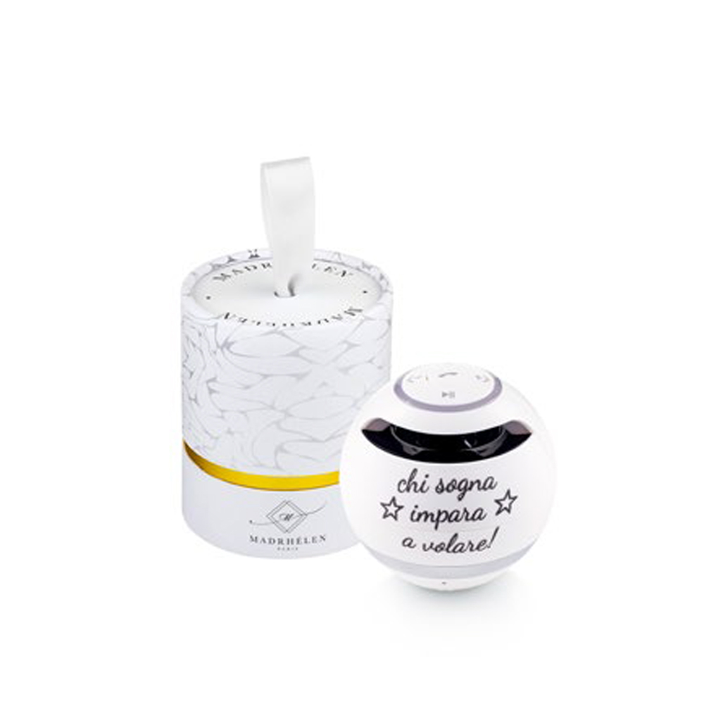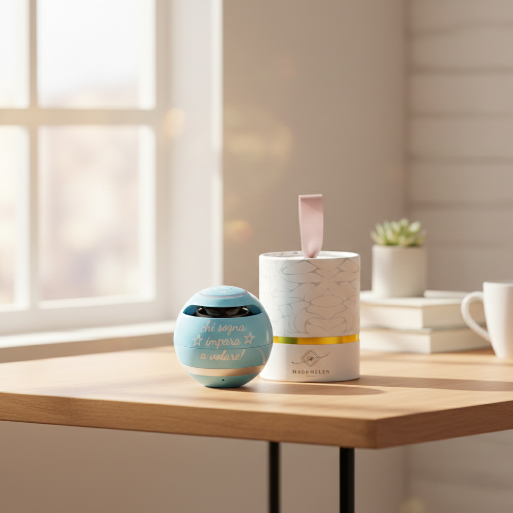 Elegante, tecnologica e dal design inconfondibile: la Radio Sfera Madrhélen è la bomboniera perfetta per chi desidera lasciare un ricordo che unisca estetica e utilità. Con il suo diametro di 8 cm, questa piccola gemma di design si adatta perfettamente a ogni angolo della casa, portando con sé armonia e stile.