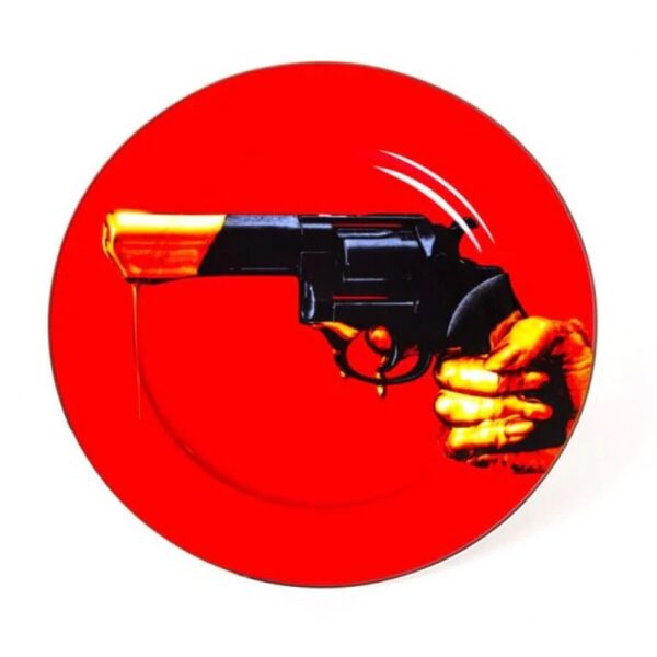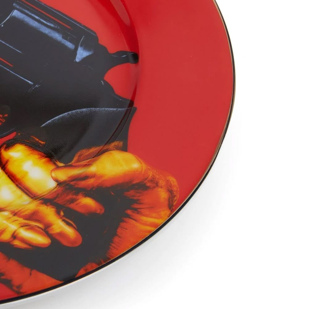 Piatto in porcellana Toilepaper con decoro Revolver della linea Seletti, scopri tutta la collezione disponibile online e nel nostro store.