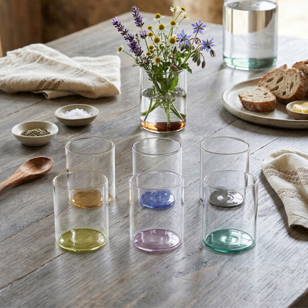 Aggiungi un tocco di colore e allegria alla tua tavola con il set di 6 bicchieri Bottom colori assortiti della linea Brandani.