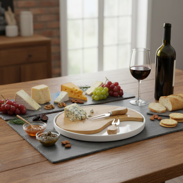Realizzato con un design elegante e materiali di alta qualità, questo tagliere include utensili dedicati per servire al meglio i tuoi formaggi preferiti.