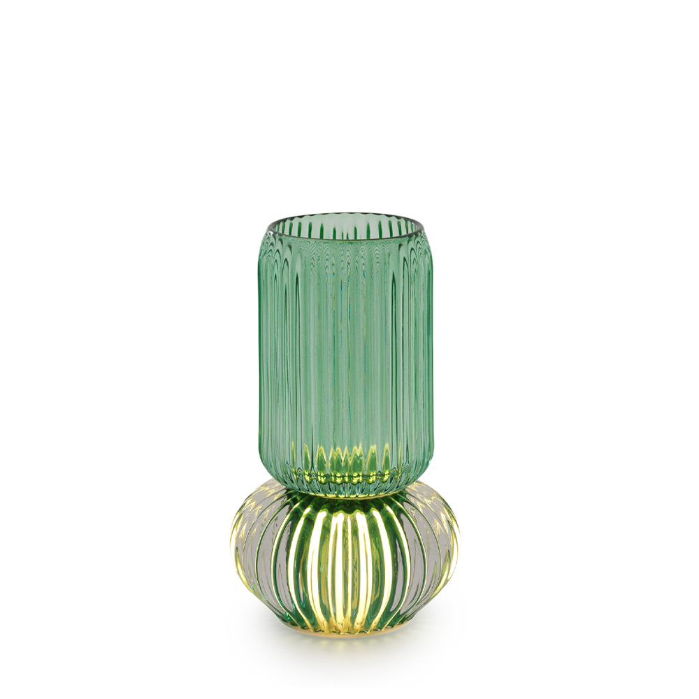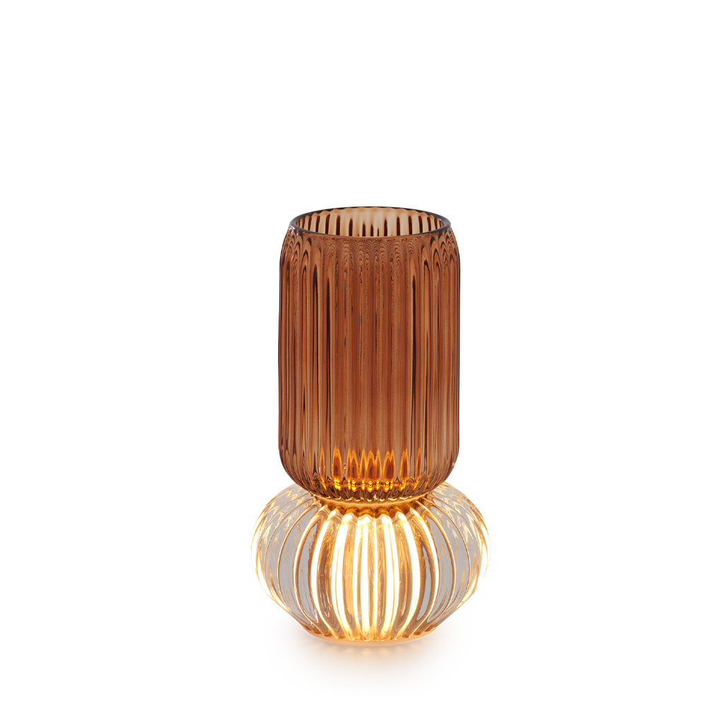 Grazie alla luce integrata, crea un’atmosfera calda e accogliente, rendendolo perfetto come centrotavola sofisticato o luce d’accento su un mobile living.