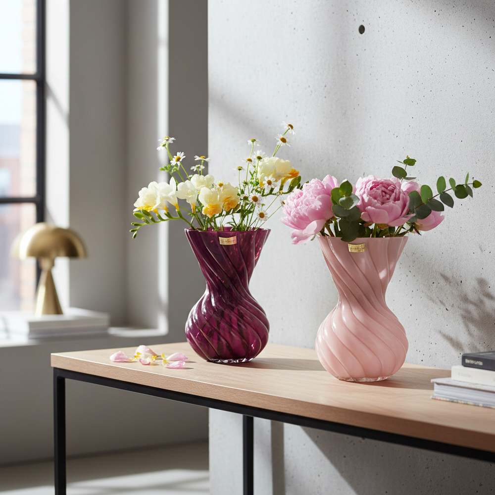 Il vaso in vetro della linea Torino firmata Ilary Queen è un complemento d’arredo unico, capace di trasformare ogni angolo della casa in una galleria d’arte moderna. Caratterizzato da una silhouette sinuosa con un raffinato motivo a spirale, questo vaso gioca con la luce e le forme, creando un movimento fluido e armonioso.